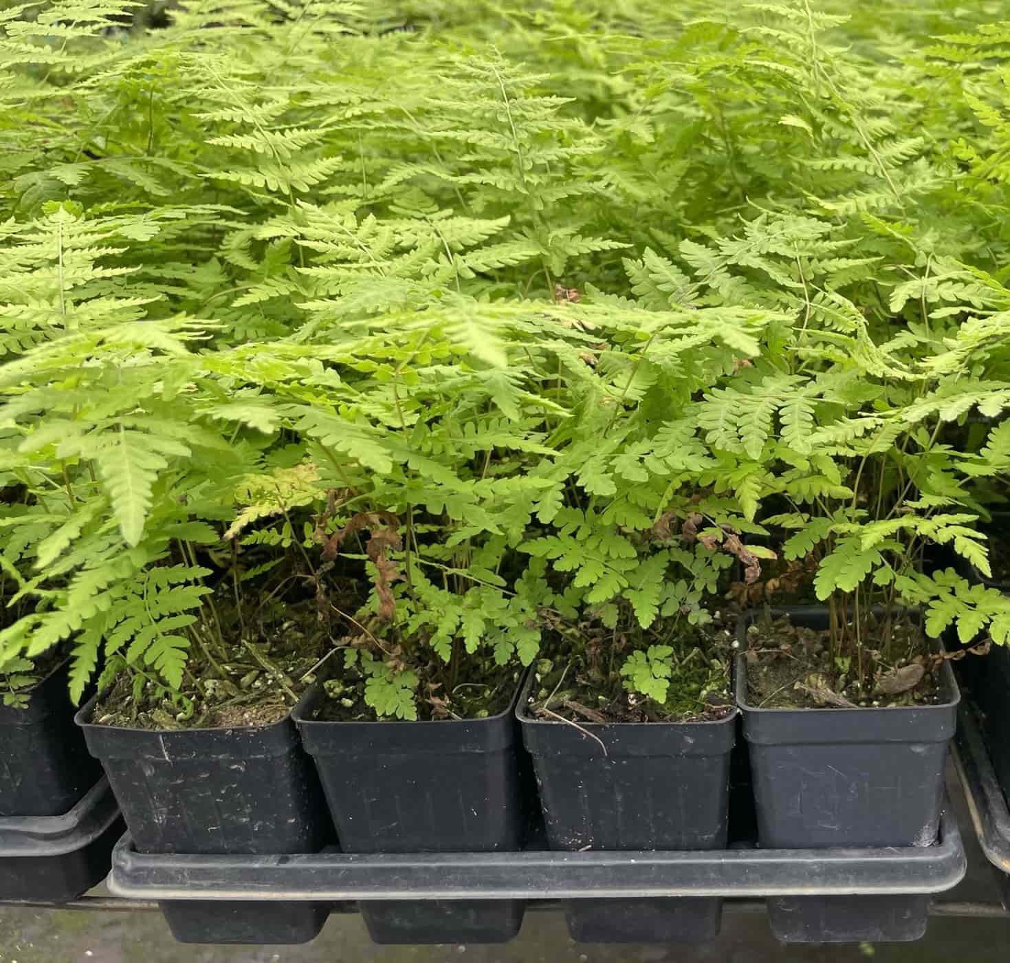 Un plateau de 15 jeunes fougères en pots de 4 pouces, lorsqu’elles sont plantées avec un espacement de 24 pouces en réseau triangulaire (nid d’abeille), permet de couvrir efficacement une surface d’environ 68 pieds carrés.