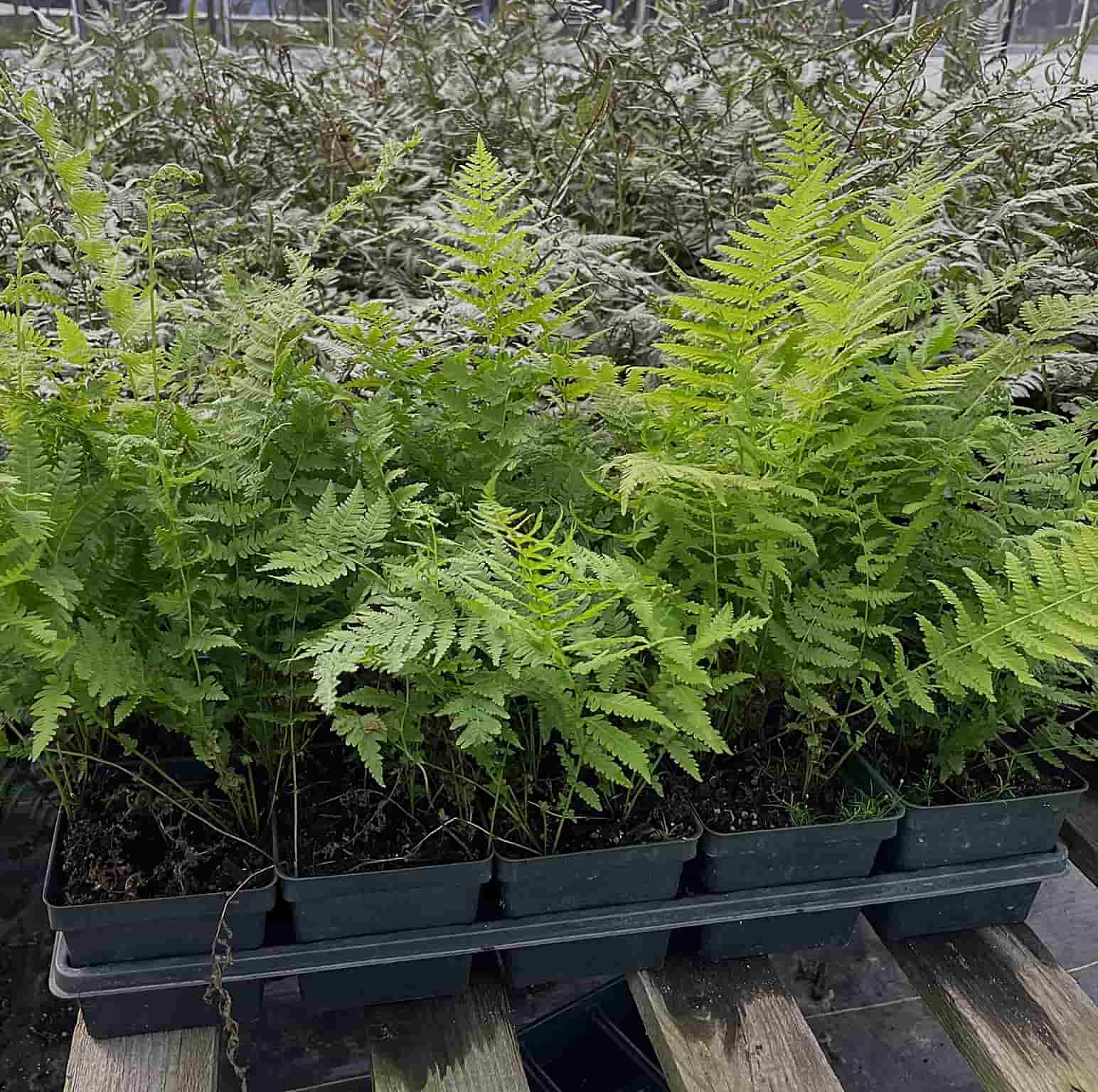 Un plateau de 15 jeunes fougères en pots de 4 pouces, lorsqu’elles sont plantées avec un espacement de 36 pouces en réseau triangulaire (nid d’abeille), permet de couvrir efficacement une surface d’environ 145 pieds carrés.